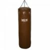 Boxsack aus strapazierfähigem, reissfestem Kunstleder mit verstärkter Aufhängung und doppelt verstärkten Nähten für höhere Langlebigkeit. Verchromte 4-fach Kettenaufhängung aus Stahl mit Drehgelenk. Gefüllt mit zerkleinerten Stoffresten für ein realistisches Boxgefühl.